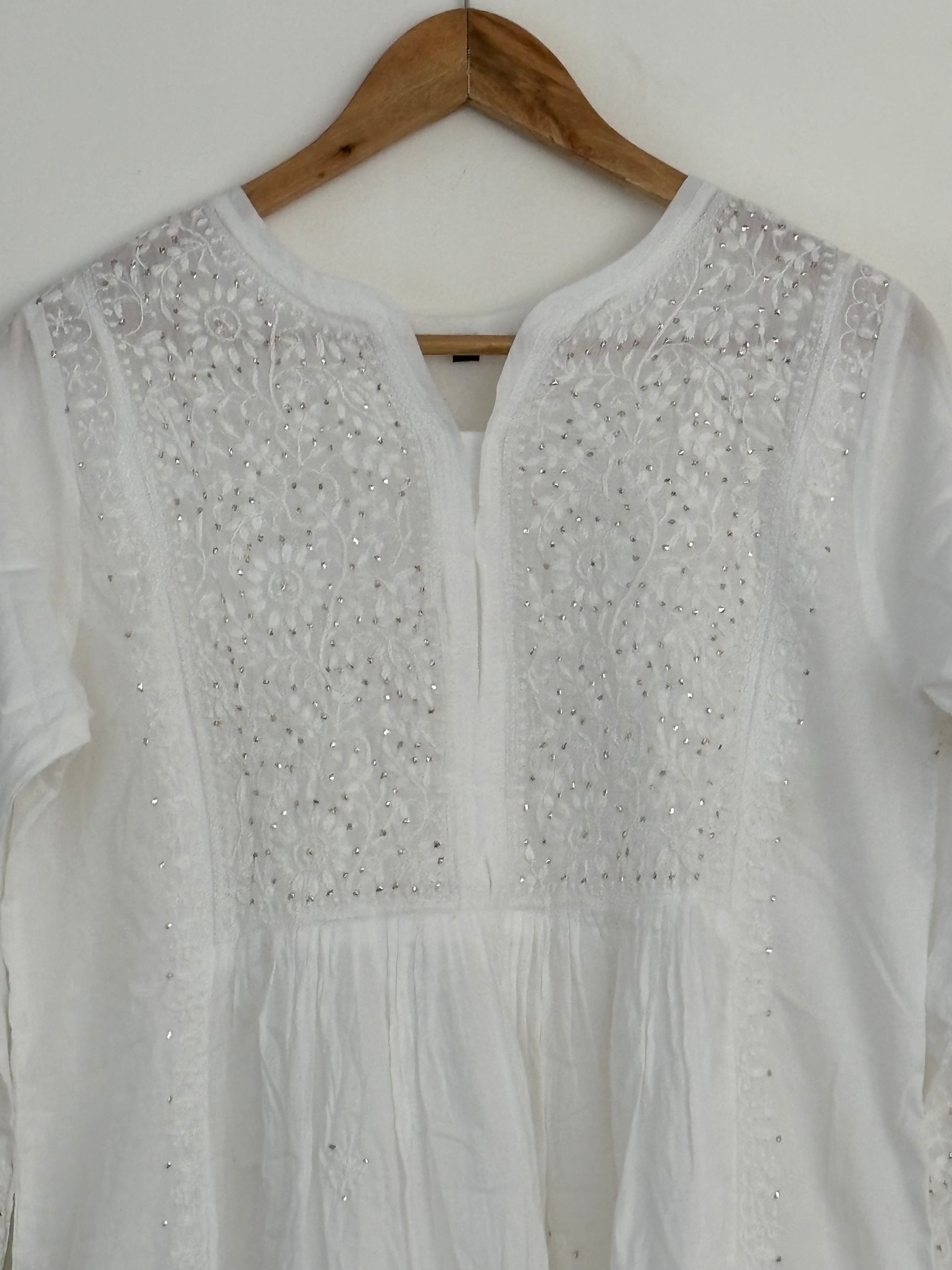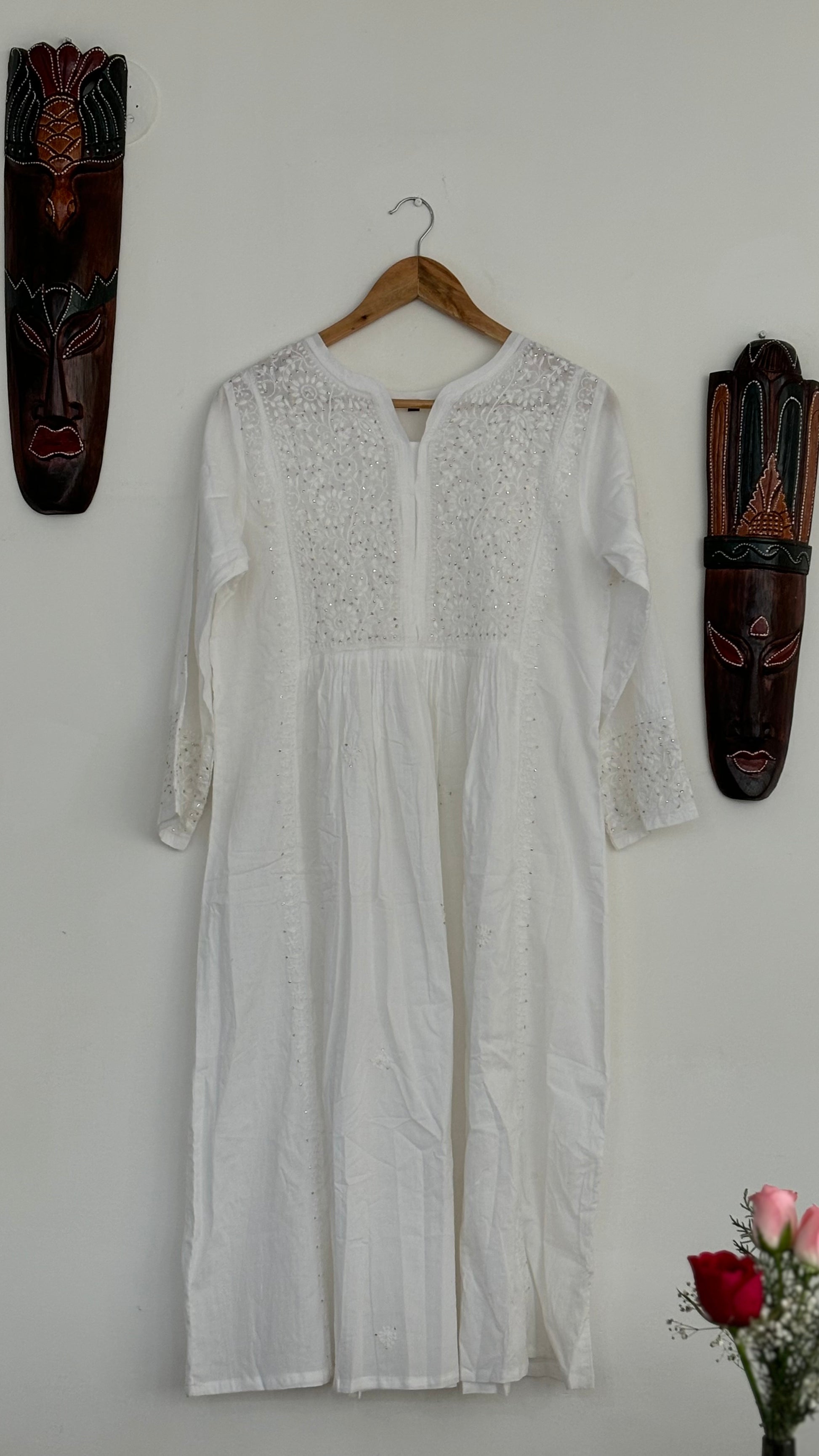 Explore our Cotton Chikankari kurta, where style and comfort harmoniously unite. Crafted for those who appreciate versatile fashion, our kurtas with golden Mukesh work offer a blend of timeless design and breathable cotton fabric.
